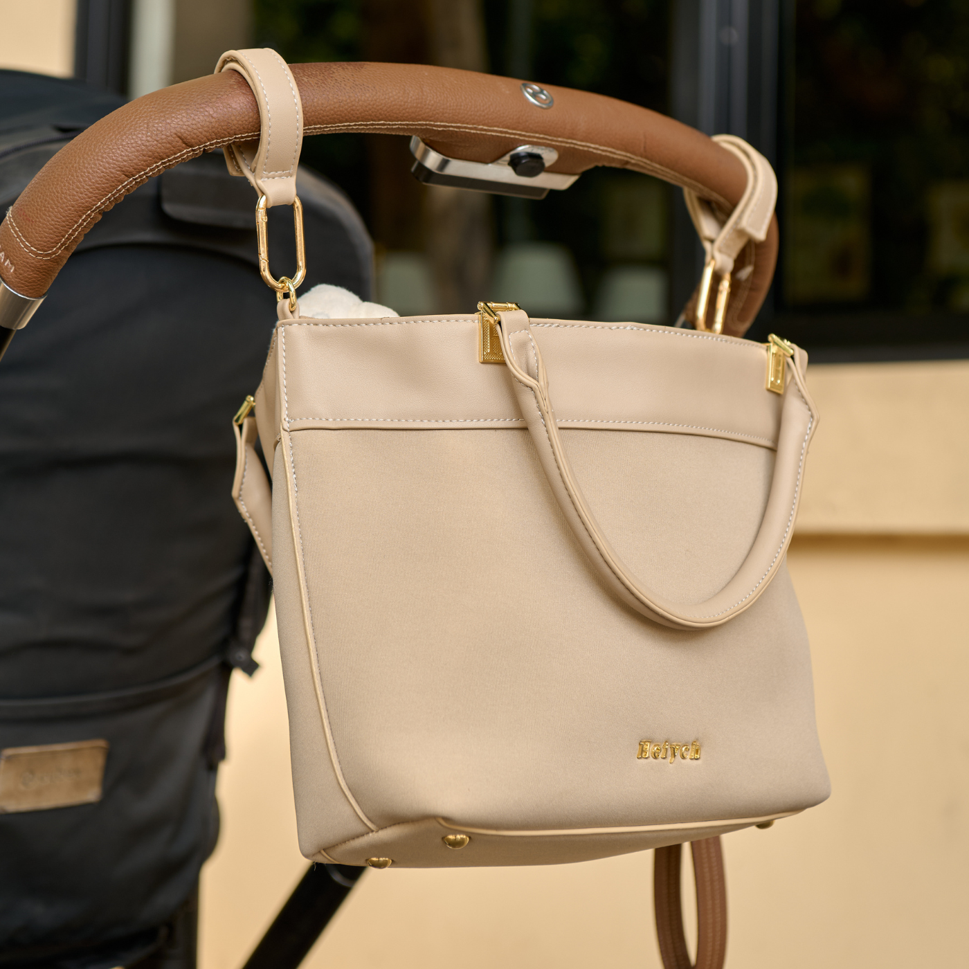 - 5-in-1 versatility: crossbody, shoulder bag, tote, pram caddy, clutch