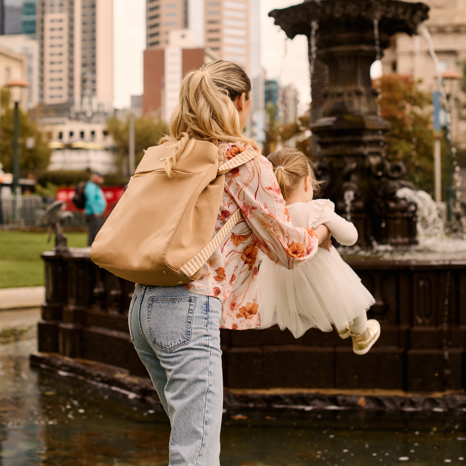 Meet your companion for everyday escapades. Effortlessly lightweight, it seamlessly transitions between tote and backpack with its convertible straps. Featuring 11 compartments, including insulated drink bottle pockets, luggage pass-through band and a complimentary change mat/laptop sleeve, it's the ultimate choice for chic, on-the-go parents, professionals and travellers.